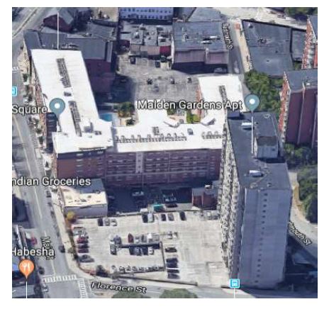 When determining the site, the most important factor for the Center is convenience for our residents and ease of access for their families. The Malden Garden Apt site is located within 6 walking distance of the Malden High school, the Malden Public Library and the Malden Youth Center. In addition, it is at 3-minute walk to Malden Station. The public bus route has a stop right on the edge of the parking lot of the property which will create broader access to the site.